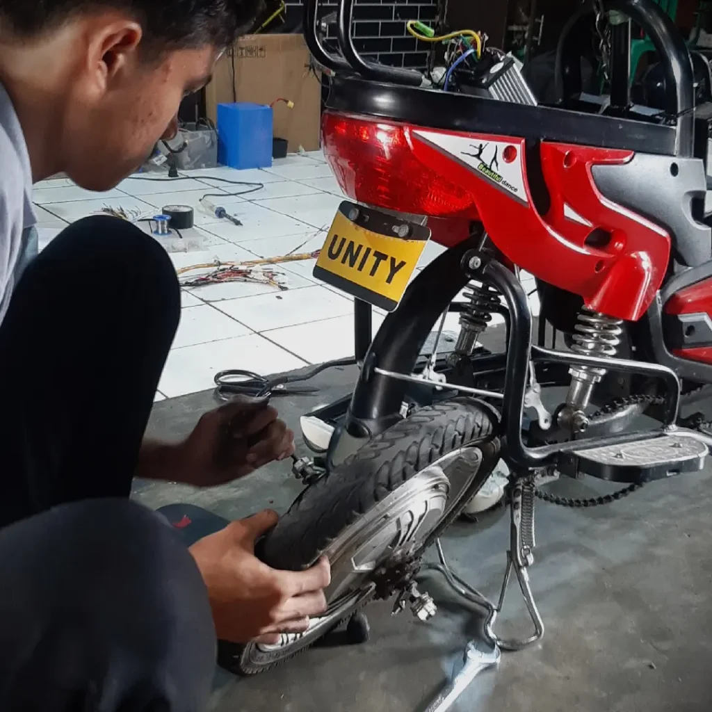 Tingkatkan Sepeda Kesayangan Anda Menjadi Sepeda Listrik! Percayakan jasa servis dan modifikasi kendaraan listrik kepada tenaga ahli terpercaya. Kami melayani servis, upgrade, dan tuning untuk sepeda listrik dan motor listrik, memastikan kendaraan Anda tetap optimal dan efisien.