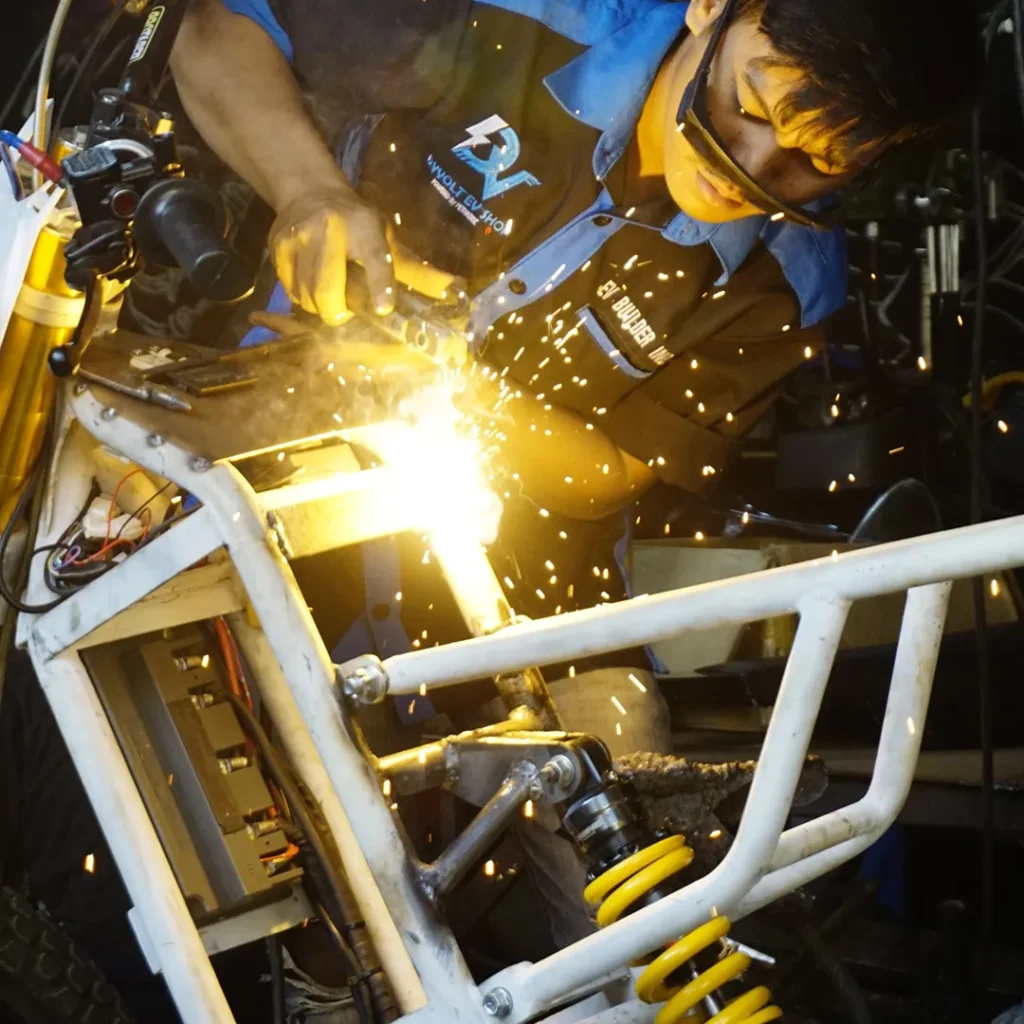 Dyvolt EV-Shop adalah bengkel spesialis kendaraan listrik yang fokus pada modifikasi dan perawatan sepeda listrik, motor listrik, serta sistem kelistrikan kendaraan listrik lainnya. Kami hadir untuk membantu pelanggan mengubah sepeda konvensional menjadi sepeda listrik, merawat kendaraan listrik, dan memperbaiki sistem kelistrikan dengan standar kualitas tinggi.
